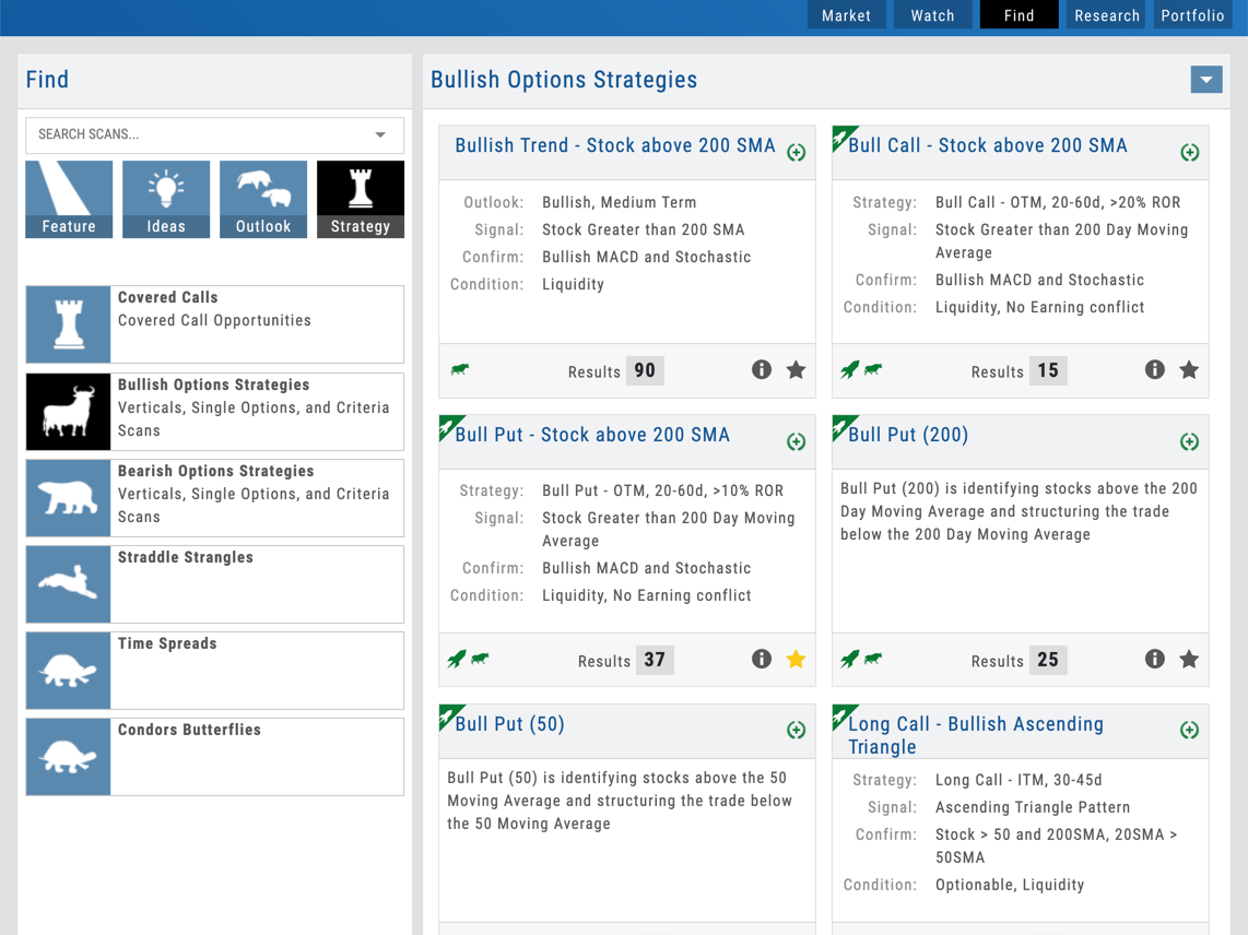 Finding the right opportunity is the key. OTA Trade offers advanced screeners by combining various points of market data, which users can use to scan the market or do fundamental research before placing a trade. Your version of the platform can offer pre-built or customized trade finder scans.